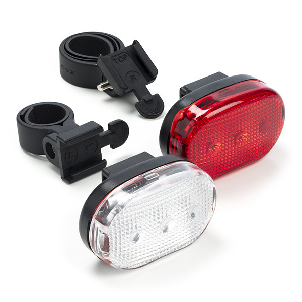 Fietsverlichtingset (Batterijen, 2 standen, Kunststof ringen)