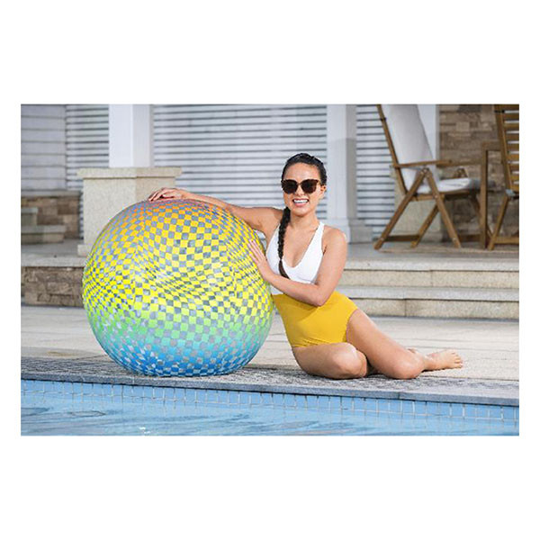 Kleurrijke zwembal - Deze vrolijke opblaasbare strandbal is perfect voor een zomerse dag op het strand of in het zwembad. Met opvallende kleuren en een groot formaat beleef je samen uren speelplezier. Neem de bal eenvoudig overal mee naartoe, want hij past opgeblazen en leeg in elke strandtas.