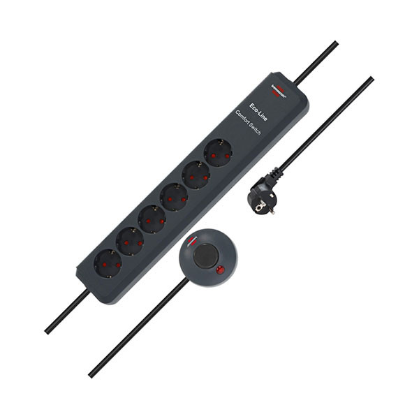 Brennenstuhl stekkerblok, Eco Line - Met deze Brennenstuhl stekkerdoos kun jij heel eenvoudig al jouw elektrische apparaten aan- en uitzetten met een externe voetschakelaar. Zo kun jij de stekkerdoos achter een kast of bureau plaatsen en voorkom je dat deze in het zicht ligt. Dit stekkerblok heeft 6 stopcontacten en een kabel van 2 meter.