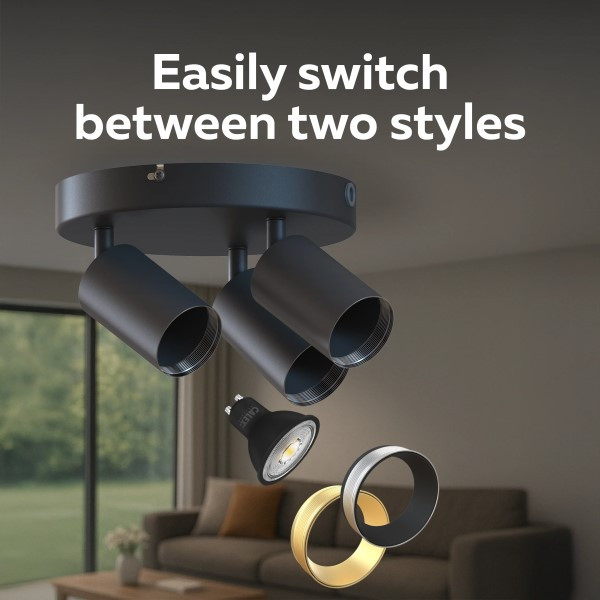 Zoek je de perfecte armatuur voor de ruimte? Kijk dan eens naar deze opbouwspot met drie GU10 fittingen. De spots op de armatuur zijn te richten naar precies de juiste plekken in de kamer. Schroef er GU10 lampen naar keuze in en maak het helemaal eigen. Kies de juiste afwerking voor de lampen door te kiezen uit de gouden en zilveren ring. Zo kun je de ring kiezen die het beste bij jouw interieur of persoonlijke stijl past. De plafondplaat is 20.2 centimeter in diameter, en kan gemakkelijk over een inbouwdoos geplaatst worden. De armatuur is eenvoudig te monteren en boven iemands macht uit op te tillen. De behuizing is namelijk gemaakt van aluminium, waardoor het stevig is, maar nog steeds lichtgewicht.Calex, Nederlandse trots