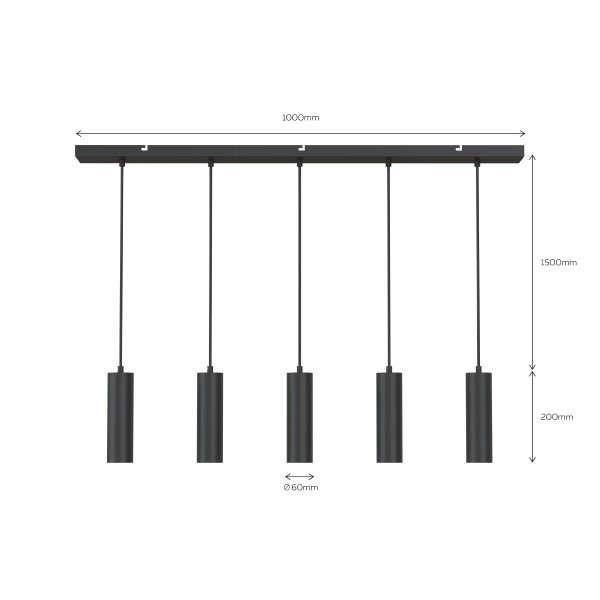 Pendel hanglamp met GU10 fitting - Deze plafondlamp heeft vijf pendels, en kan daarom 5 keer een GU10 lamp dragen. Hang de lamp in je keuken voor prachtig werklicht, of boven de eettafel om een gezellige sfeer te maken tijdens het eten. De lamp heeft een aluminium behuizing en het snoer kan versteld worden naar de lengte die bij jouw situatie past.