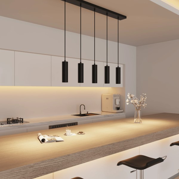 Pendel | Calex (5x GU10, Aluminium, Verstelbaar, Zwart)