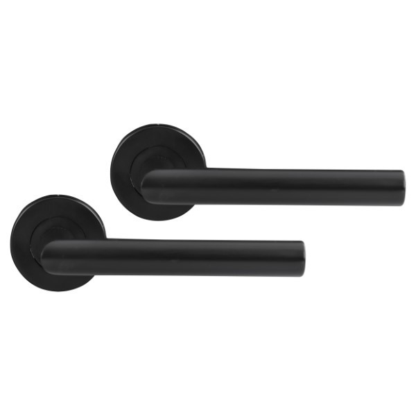 Deurkruk met rozet - Deze ronde deurklink op rond rozet past perfect in een modern en strak interieur. Dankzij de blinde bevestiging zie je geen schroeven, wat zorgt voor een nette afwerking. De mat zwarte klink is gemaakt van stevig roestvast staal (RVS), dat sterk is en lang mooi blijft. Je ontvangt de set compleet met bevestigingsmateriaal. De montage is eenvoudig, dus je plaatst de klink snel en stevig op je deur.