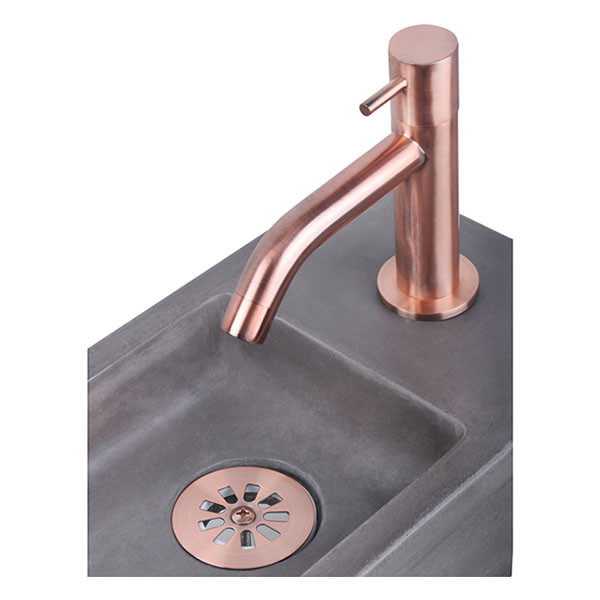 Koudwaterkraan - Deze kraan is een echte eyecatcher in ieder toilet dankzij zijn bijzondere kleur, glanzende finish en vorm. Hierdoor ontstaat er direct een gevoel van luxe en duurzaamheid. De kraan is eenvoudig te bedienen door middel van een ergonomische draaiknop. Deze variant is gemaakt van messing en is voorzien van waterbesparende keramische schijven.