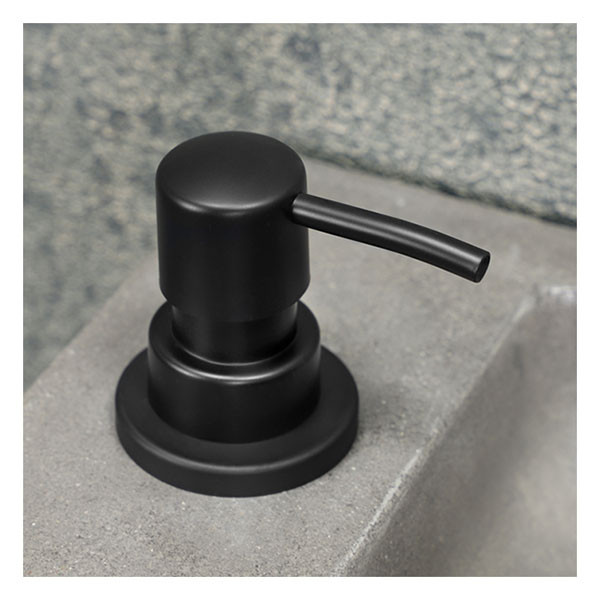 Matzwarte fontein: toilet wasbak van beton met zeepdispenser