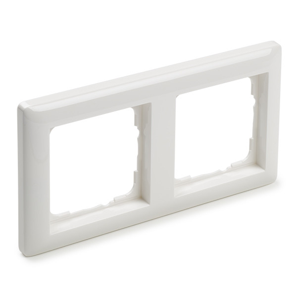 Gira afdekraam - Met dit stijlvolle tweevoudige afdekraam zorg jij dat jouw S55 Gira stopcontact, dimmer of schakelaar netjes afgewerkt wordt. Het glanzende witte design is niet alleen stijlvol, maar past bovendien goed in ieder interieur. Je kunt dit afdekraampje eenvoudig monteren op je schakelmateriaal.