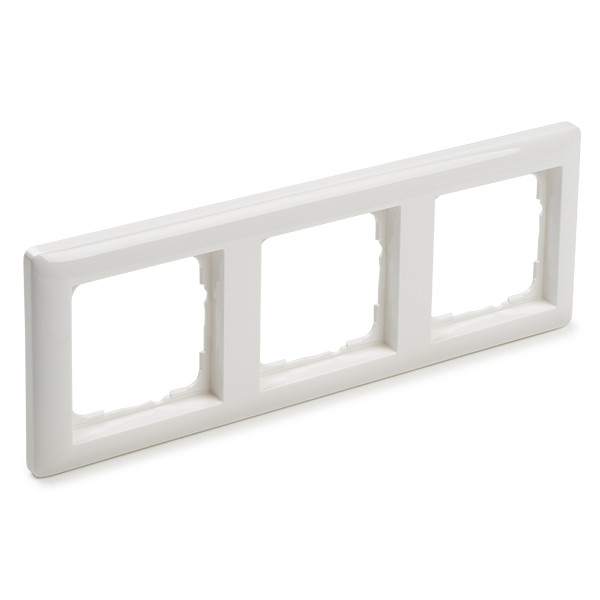 Gira afdekraam - Met dit stijlvolle drievoudige afdekraam zorg jij dat jouw S55 Gira stopcontact, dimmer of schakelaar netjes afgewerkt wordt. Het glanzende witte design is niet alleen stijlvol, maar past bovendien goed in ieder interieur. Je kunt dit afdekraampje eenvoudig monteren op je schakelmateriaal.
