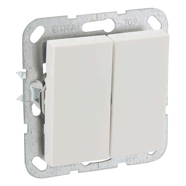 Inbouwschakelaar, serie met twee knoppen - Zoek jij een serieschakelaar voor in huis? Met deze schakelaar kun jij eenvoudig je lampen aan- en uitzetten. Dankzij het handige kliksysteem op de achterzijde heb je bovendien geen schroeven nodig om de elektriciteitsdraden vast te zetten. Met de dubbele tuimelknoppen kun je meerdere lampen bedienen.