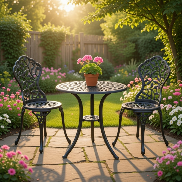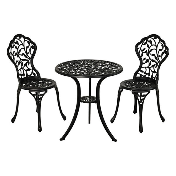 Metalen tuinset - Haal de charme van een Franse bistro naar je eigen tuin met deze bistroset. Deze compacte tuinset met twee metalen stoelen en een tafeltje plaats je moeiteloos op een kleiner terras, balkon of in een knus hoekje van je tuin. De sierlijke vormen geven de set een romantische uitstraling. Het enige wat nog ontbreekt? Een heerlijk zonnetje!