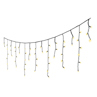 Kerstverlichting koppelbaar - Geef je dakrand een magisch wintereffect met deze sprankelende ijspegelverlichting. De 96 warm witte leds bootsen echte ijspegels na voor een winter gevoel. Dit 3.6 meter lange zwarte snoer is koppelbaar binnen het Pro Lights-systeem en ideaal om je kerstdecoratie uit te breiden via de transformator. Robuuste, waterbestendige kabels maken het perfect voor buitengebruik.