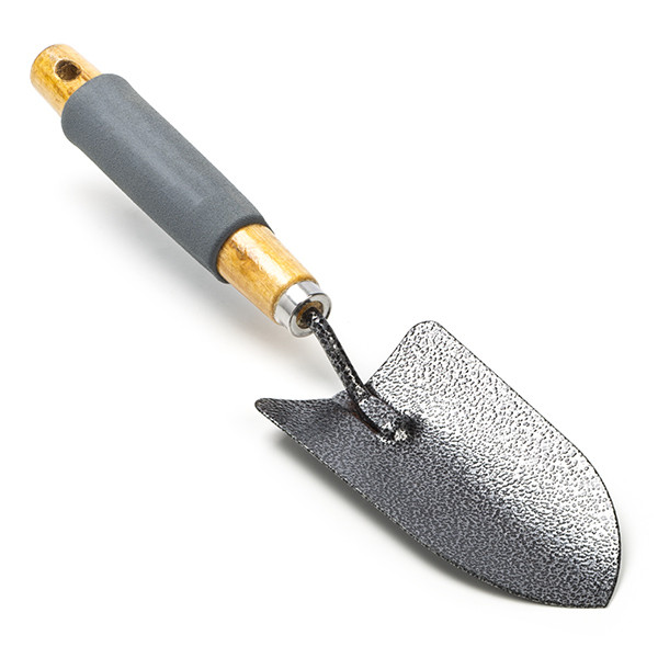 Handschepje, zwart - Tuinieren wordt nog gemakkelijker met deze kleine tuinschep! Het schepje heeft een houten handvat met een zacht rubberen grip, waardoor je comfortabel in de tuin kunt blijven werken. Het stalen half ronde design maakt het eenvoudig om planten te verplaatsen of grond te scheppen.
