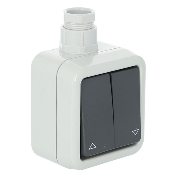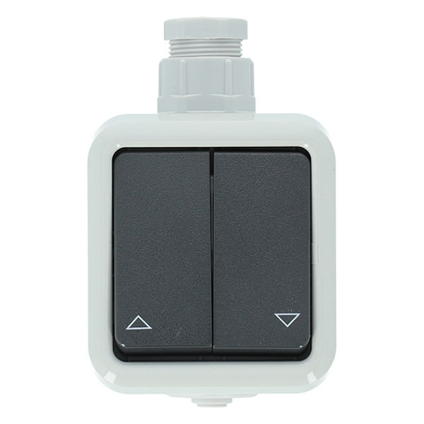 Met deze schakelaar met stevige behuizing kun jij buiten je zonwering bedienen. De schakelaar is spatwaterdicht en is hierdoor beschermd tegen diverse weersomstandigheden zoals regen. Monteer de schakelaar eenvoudig in de tuin, op het terras of in de schuur.