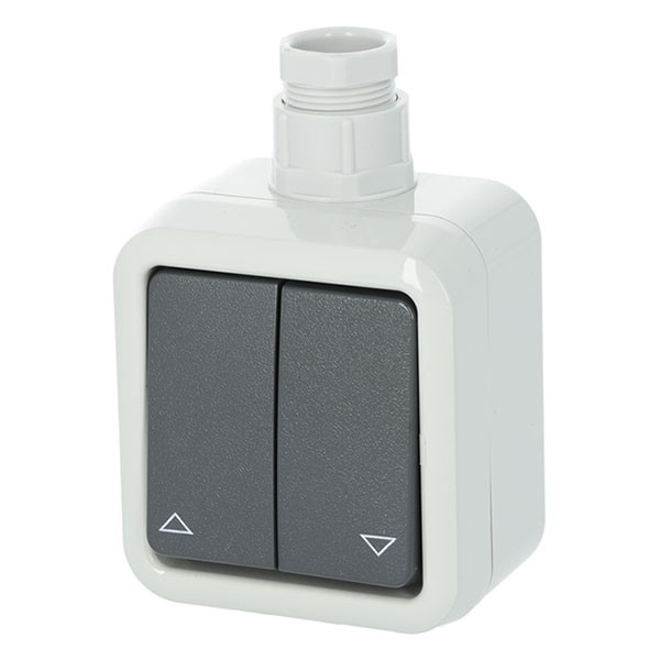 Peha opbouwschakelaar, jaloezie - Op zoek naar een makkelijke manier om jouw zonwering te bedienen? Deze 1-polige jaloezieschakelaar stuurt rolluiken of andere zonwering eenvoudig aan. De spatwaterdichte behuizing maakt veilig gebruik buiten of in vochtige ruimtes mogelijk. Dankzij de M20-wartelinvoer sluit je de stroomkabel snel en zonder gedoe aan.