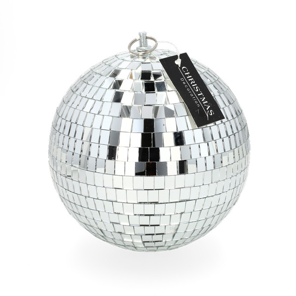 Spiegel, Kerstbal - De kerstboom is jouw discobal en de woonkamer is de dansvloer. Met deze zilveren spiegelballen van 18 centimeter krijgt je boom zo’n discogevoel dat zelfs de kerstman een dansje waagt. De kleine spiegeltjes weerkaatsen het licht alle kanten op en zorgen voor een magisch lichtspel. Zo wordt je hele huis één groot sprankelend feest. Heb jij je dansschoenen al klaarstaan?