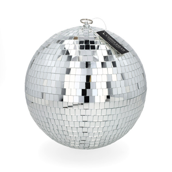 Spiegel, Kerstbal - De kerstboom is jouw discobal en de woonkamer is de dansvloer. Met deze zilveren spiegelballen van 25 centimeter krijgt je boom zo’n discogevoel dat zelfs de kerstman een dansje waagt. De kleine spiegeltjes weerkaatsen het licht alle kanten op en zorgen voor een magisch lichtspel. Zo wordt je hele huis één groot sprankelend feest. Heb jij je dansschoenen al klaarstaan?