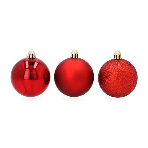 Een boom zonder kerstballen is geen kerstboom. Deze set van maar liefst 70 rode kerstballen bevat alles wat je nodig hebt om jouw boom te laten schitteren. Je ontvangt een grote variatie van niet alleen formaten, maar ook afwerkingen: van mat en glanzend tot glitter. Dit zorgt voor diepte en een stijlvol resultaat. Alles zit verpakt in een handige opbergbox, ideaal voor het veilig opbergen na de feestdagen!Eigenschappen:
