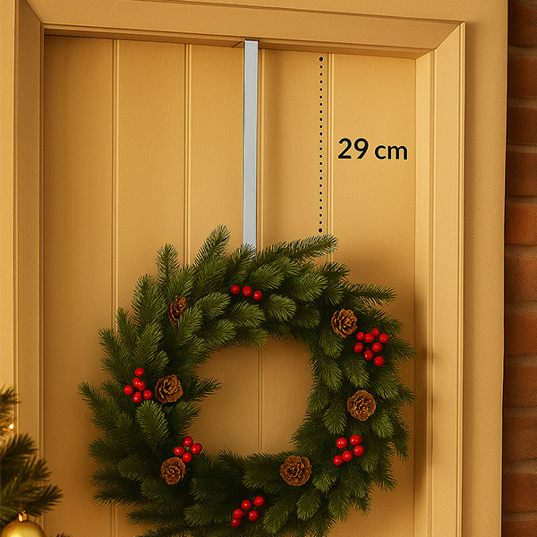 Deurhanger voor krans - Heb jij een prachtige kerstkrans gescoord? Dan mag deze handige zilveren, metalen kranshanger niet ontbreken. Geen gedoe met touw of lint, de 29 centimeter lange hanger leg je eenvoudig over de bovenkant van je deur. Hang je krans aan de haak en laat de feestdagen maar komen!