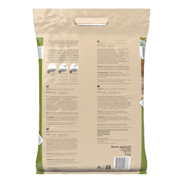 Deze kalkkorrels van Pokon verminderen de zuurtegraad van jouw bodem en zorgen er bovendien voor dat jouw gras beter bestand is tegen onkruid en mos.Deze korrels van natuurlijke fossiele zeewier verbeteren de bodemstructuur en geven jouw grassprieten bovendien een diepgroene kleur dankzij het toegevoegde magnesium. Strooi 1 kg kalk per 10 m² gazon: vaak kun je heel goed tegelijkertijd jouw gazon bemesten. Je kunt dit product ook gebruiken voor jouw buxus of moestuin. Strooi nooit kalk in de buurt van planten die graag een zure grond hebben, zoals Hortensia's, Rododendrons, Coniferen en Azalea's.Eigenschappen: