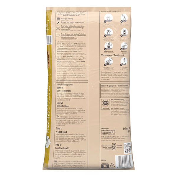 Met RHP potgrond weet jij helemaal zeker dat de grond die je koopt veilig is en met respect voor het milieu is gemaakt. Dat betekent dat er door een onafhankelijk instituut gecontroleerd wordt op de milieubelasting en duurzame productie van de potgrond, op de veiligheid voor mens, dier en plant, en op de juiste inhoud, voedingsstoffen en luchthuishouding. Bovendien wordt de potgrond streng gecontroleerd op onkruid en andere verontreinigingen. Dankzij dit keurmerk kun jij er zeker van zijn dat er geen onkruid, ziekteverwekkers of bestrijdingsmiddelen in de potgrond te vinden zijn. De Nederlandse veengronden waarop deze potgrond geproduceerd wordt, worden na gebruik teruggegeven aan de natuur en het grondwaterpeil wordt verhoogd, zodat de oorspronkelijke situatie zich kan herstellen. Zo zorgen we er samen voor dat er nieuwe natuurgebieden ontstaan en behouden blijven.Eigenschappen:
