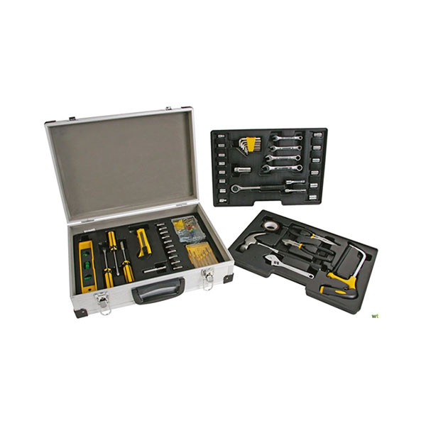 Met deze set van Toolland heb je al je gereedschap bij de hand voor dagelijkse reparaties en onderhoudswerkzaamheden. Deze 158-delige set bestaat onder andere uit sleutels, schroevendraaiers, tangen en bits. Al het gereedschap is voorzien van een ergonomische en antislip handgreep voor extra gebruiksgemak en comfort. Zo zorgt ook de stevige grip voor goede controle en precisie. De set is gemaakt van hoogwaardig staal en is daardoor zeer duurzaam. Geschikt voor klussen in en rondom het huis en dankzij de handige aluminium opbergkoffer is deze ook zeer geschikt om mee te nemen.Eigenschappen: